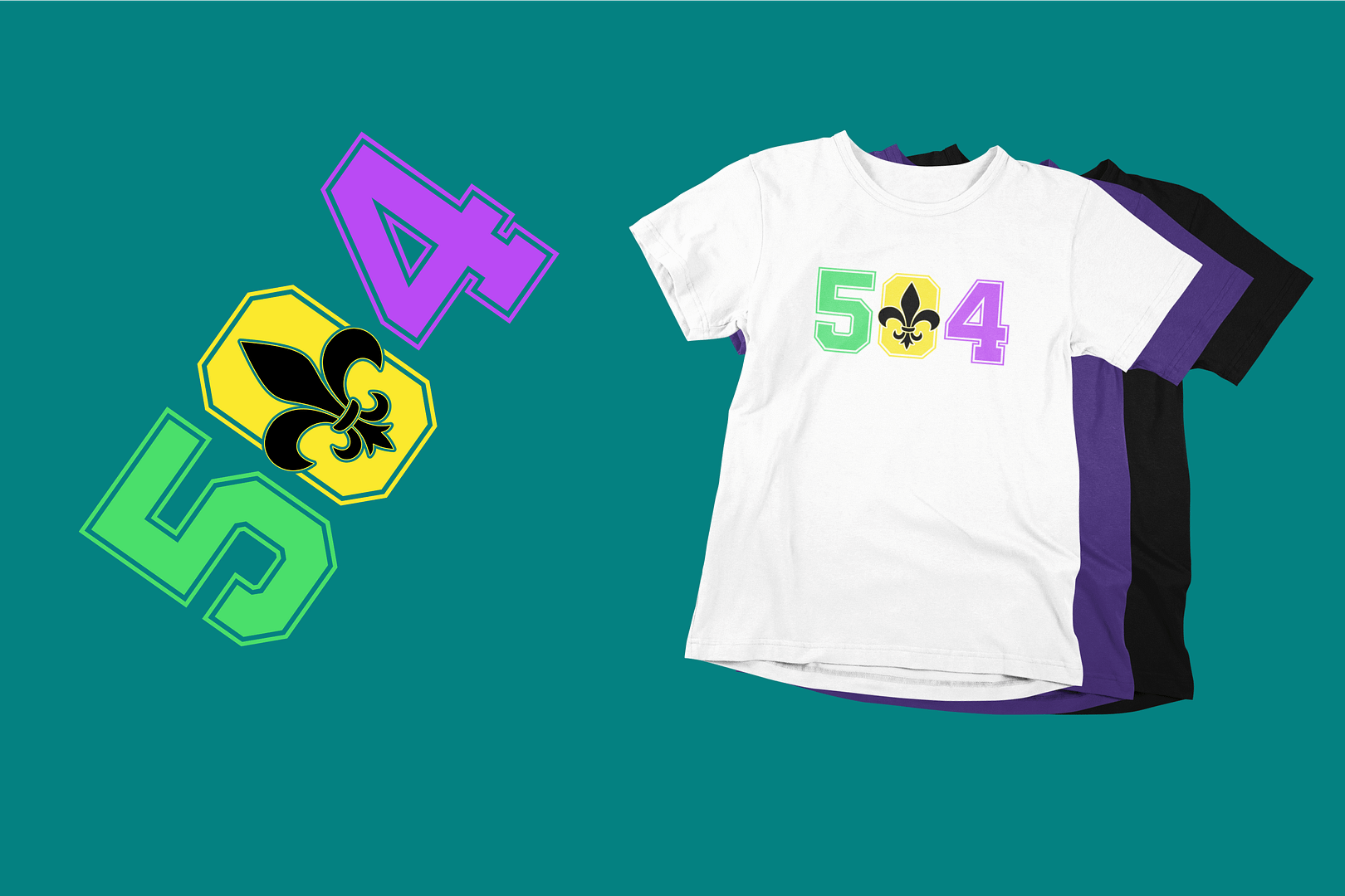 Celebrate Mardi Gras in style with the 504 Fleur De Lis Spirit T-Shirt! Made from soft, durable 100% preshrunk cotton, this shirt features the bold 504 design in Mardi Gras colors—green, gold, and purple—with a fleur de lis at its center.