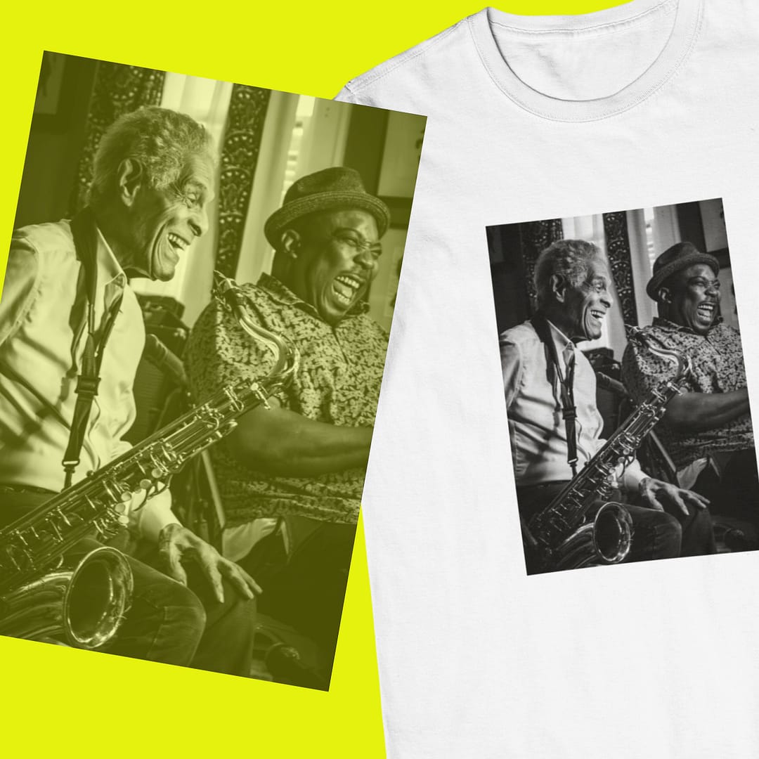 Own a piece of jazz history and wear it with pride—order your Charlie Gabriel & Kevin Louis t-shirt