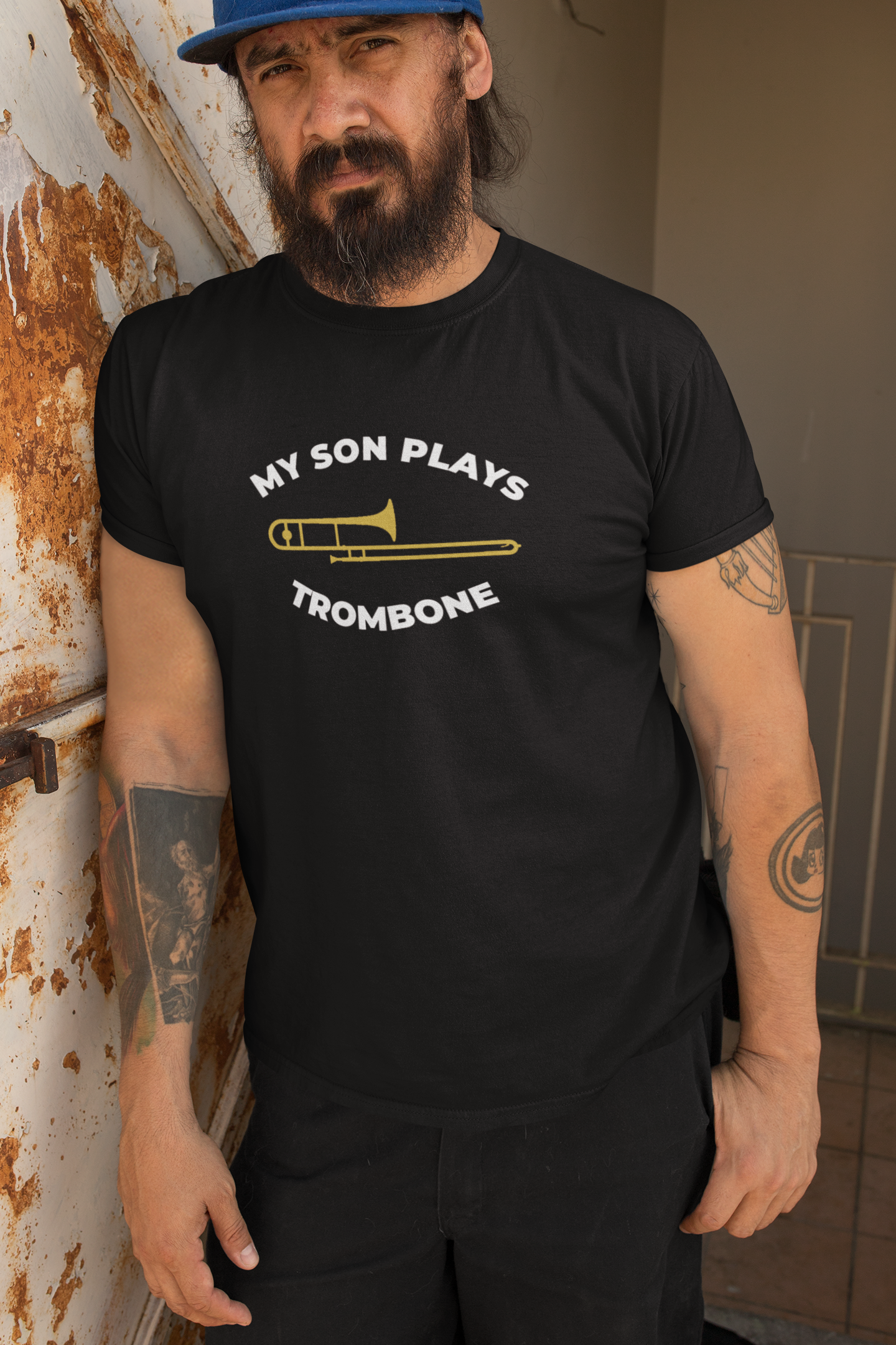 Celebrate your son’s musical talent with this “My Son Plays Trombone” t-shirt. Featuring a sleek gold trombone illustration and bold black lettering, this design is perfect for proud parents who want to showcase their child’s love for music. Made from soft, durable fabric, this t-shirt is comfortable and long-lasting, making it ideal for concerts or casual outings. Available in sizes S-5XL, it offers a great fit for everyone. Wear your pride and support your son’s musical journey in style!