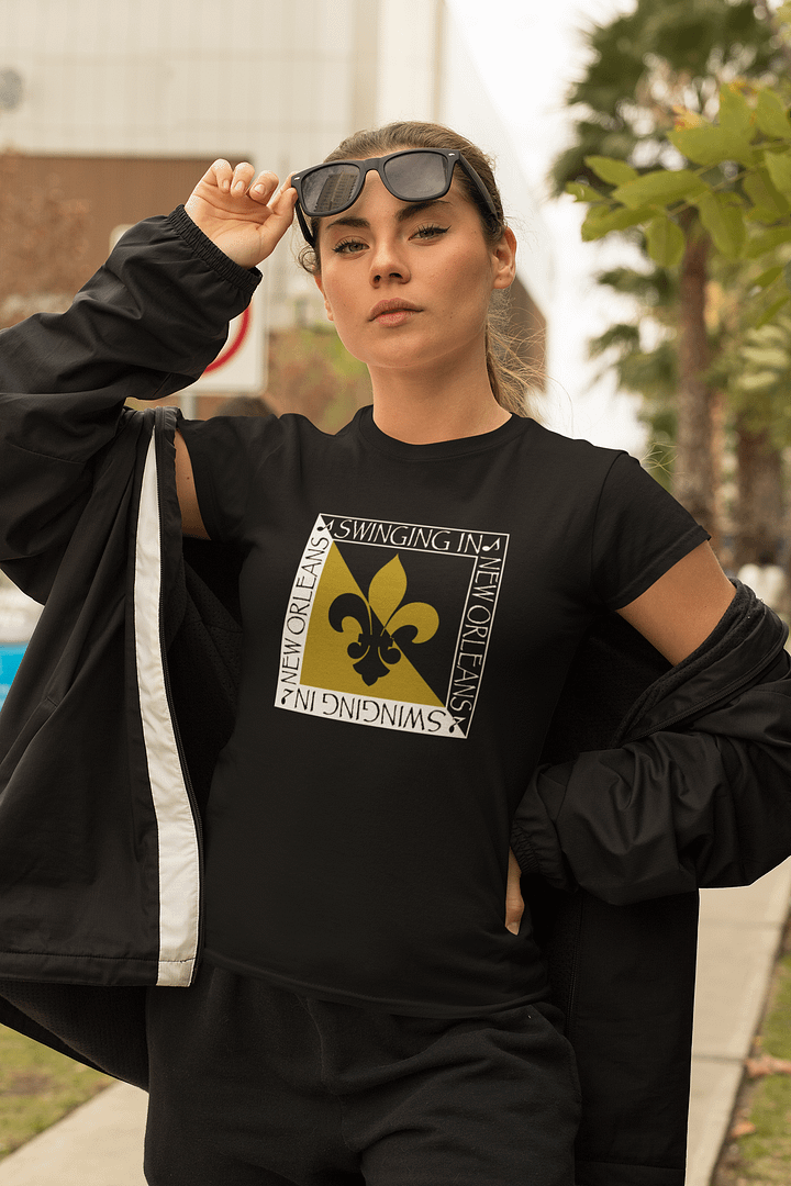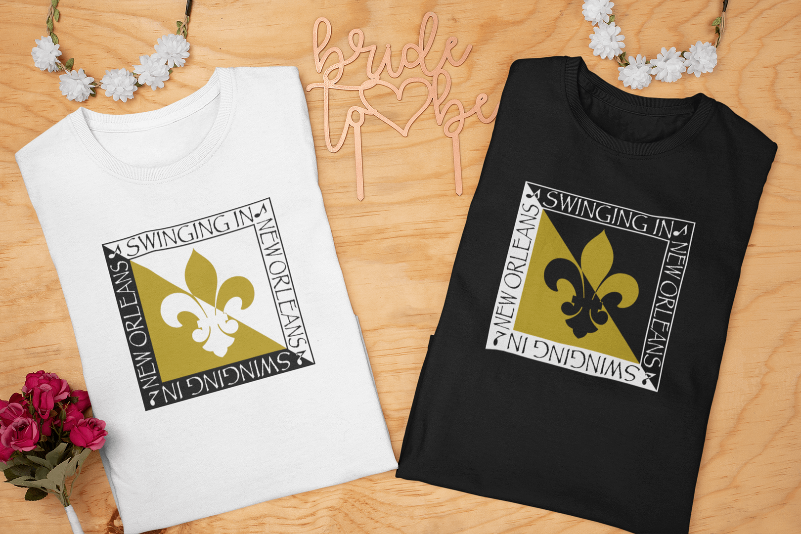 Celebrate the spirit of New Orleans with our Swinging in New Orleans Fleur De Lis T-Shirt, featuring a classic gold design that embodies the city’s rich cultural heritage. This elegant Fleur De Lis graphic is framed by the phrase “Swinging in New Orleans,” making it a perfect tribute to the city’s vibrant jazz scene. Available in both black and white t-shirt options, this shirt is ideal for anyone who loves New Orleans and its unique musical legacy.