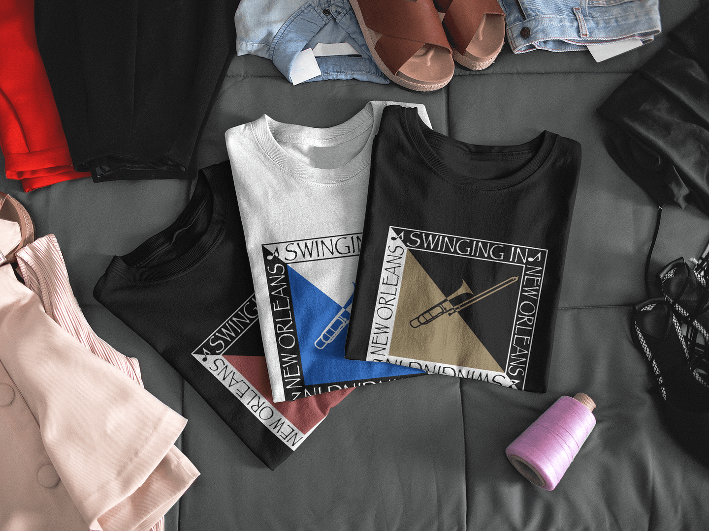 Celebrate the vibrant jazz culture of New Orleans with our Swinging in New Orleans Trombone T-Shirt. This design features a striking trombone graphic surrounded by the phrase “Swinging in New Orleans,” capturing the soulful spirit of the city’s music scene. Available in classic black and white t-shirts, with design colors in gold, blue, and red, this shirt is perfect for jazz lovers and anyone who cherishes the heartbeat of New Orleans.