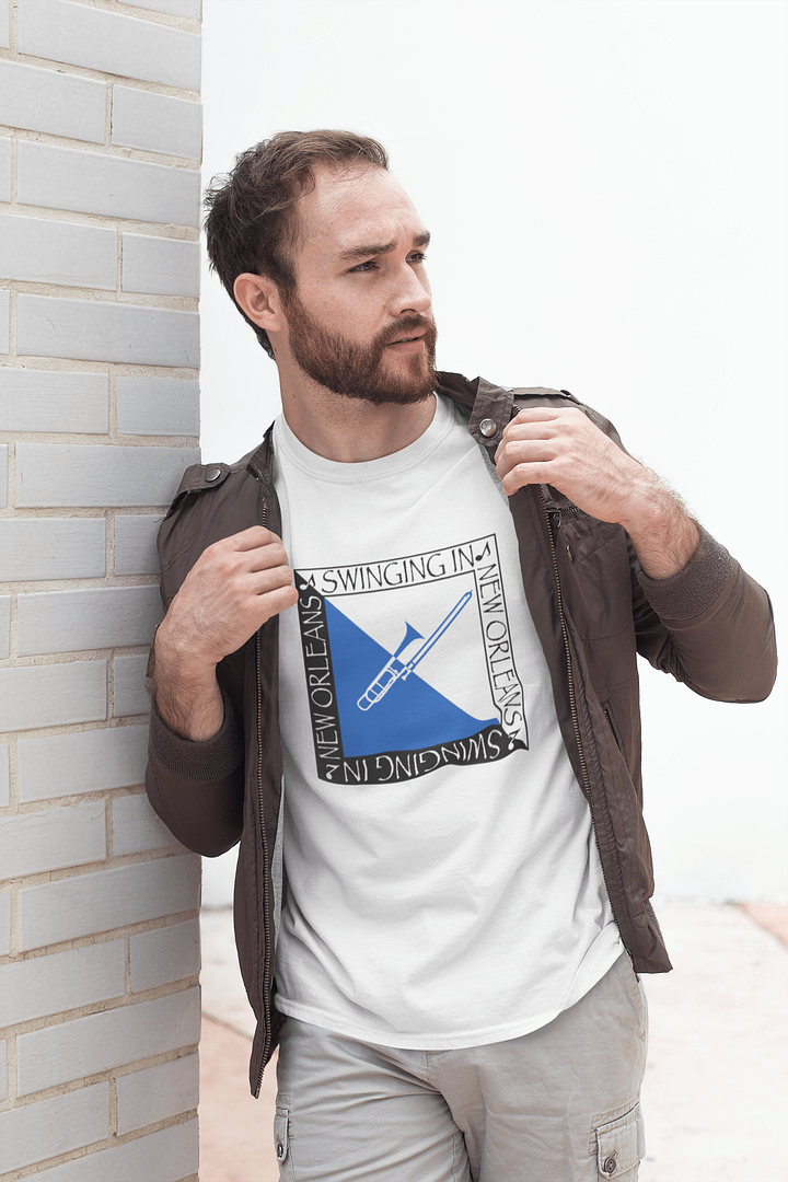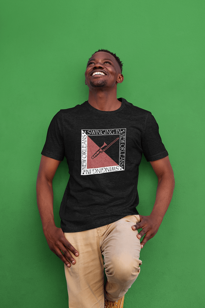 Available in sizes S-5XL, this t-shirt offers a comfortable fit for all. Support local jazz musicians and keep the spirit of New Orleans alive—order your Swinging in New Orleans Trombone T-Shirt today!