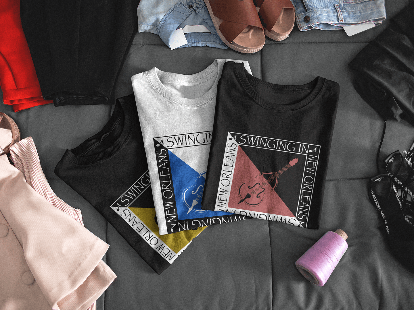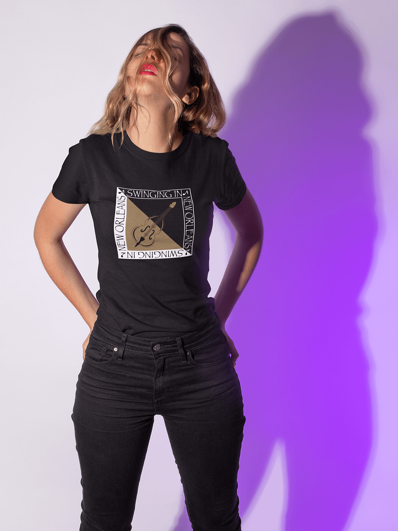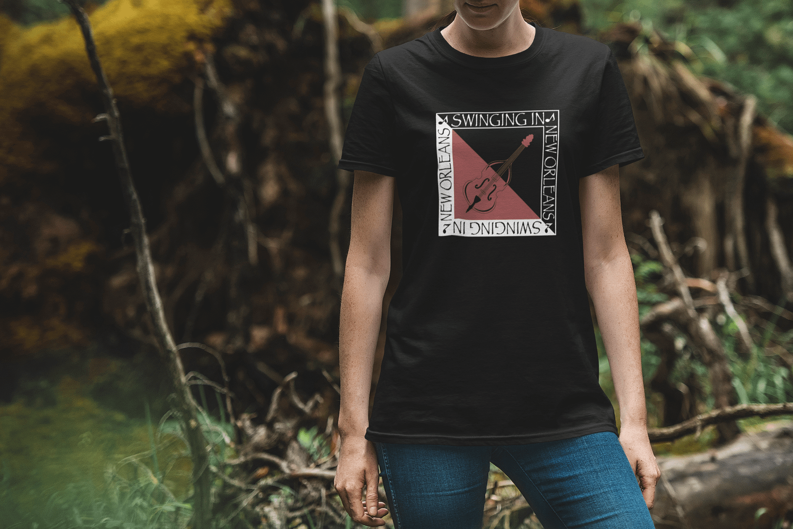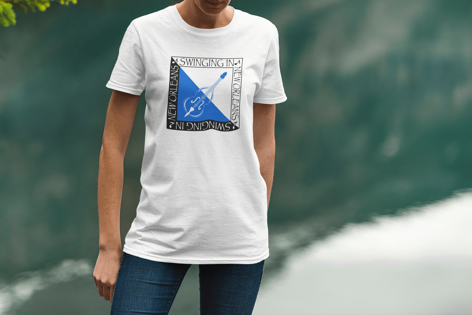 Dive into the rhythm of New Orleans with our Swinging in New Orleans Upright Bass T-Shirt, featuring a striking design that highlights the city’s deep musical roots. This t-shirt showcases an upright bass graphic surrounded by the phrase “Swinging in New Orleans,” available in bold blue, red, and gold design options. Whether you choose the classic black or white t-shirt, this piece perfectly embodies the spirit of New Orleans jazz.